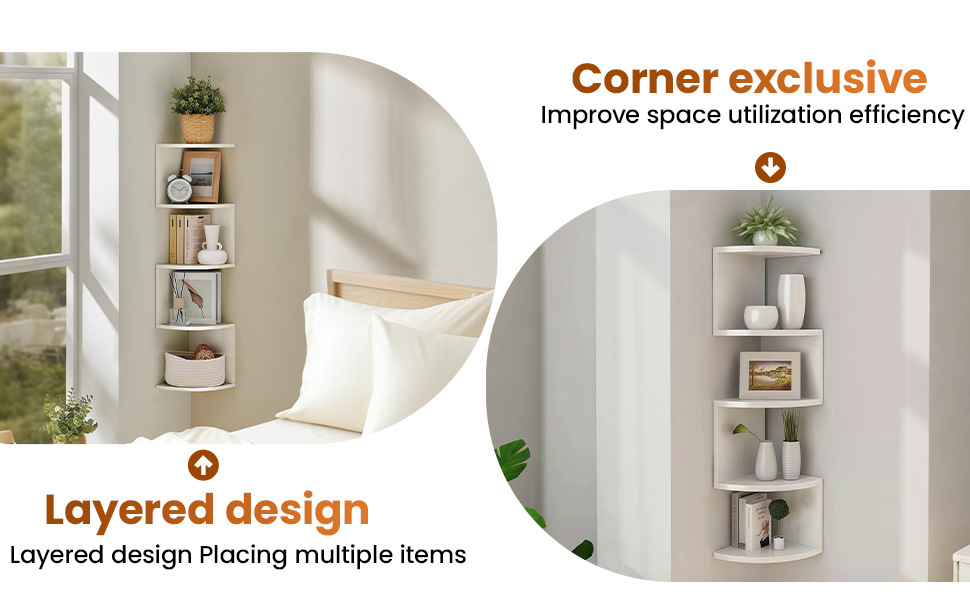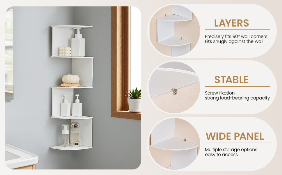 Wall-mounted Corner Shelf - Space-saving triangular design optimizes unused corner areas